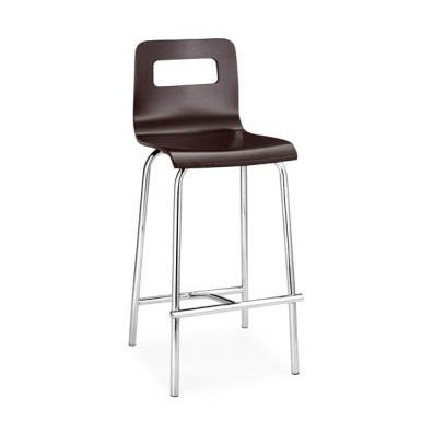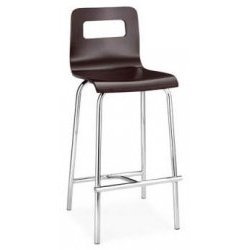These stylish counter stools feature a bent plywood seat formed in an L-shaped curve with a long offset bottom. The offset, asymmetric position of the seat is balanced by outwardly spread legs which come in a gleaming chrome finish. Great for kitchen counter or bar use. Stylish counter bar stools from Zuo Modern's Escape Collection. Set of two. Wenge wood finish. Chrome steel tube frame. Counter height seat. Armless design. Each stool is 16" wide, 24" high.