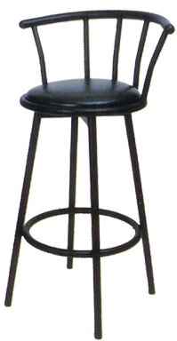 These are new, 29", black metal stools. They have footrests and have a swivel seat with a backrest!! The seat is made of BLACK vinyl and are reminiscent of the old soda fountain parlors. The pads are 14" across and the seat is 29" tall. The entire height is 39".