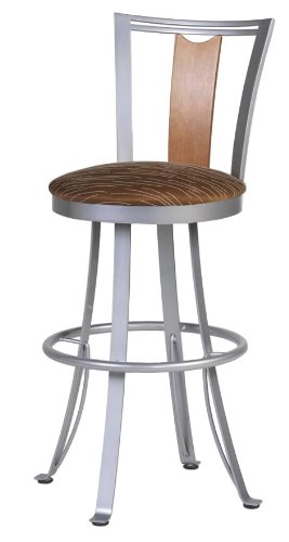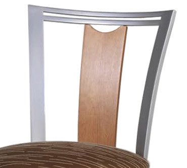 Contemporary stool with upholstered seat. Swives 360_. Ultra resistant construction with thick steel metal. Backrest part in birch wood veneer. Welding and swivel Guaranteed for 5 years. Easy assembly, takes less than five minutes to assemble base and seat. High quality made in North America.Metal Finish SelectionFabric SelectionWood Finish Selection