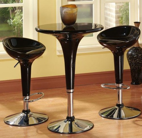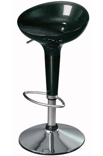 This unique Ventura Contemporary Adjustable Stool will be a fun accent to your kitchen furniture. The modern design will add flair to your decor.It features a metallic-finished fiberglass seat, plus a chrome-finished steel swivel base that takes adjustable to a new level. With an easy push of the lever, a gas-piston-activated mechanism smoothly boosts or lowers each retro bar stool to a new height. Order yours today.Footrest for added stability and comfort.Coordinates with the Ventura Collection pub tables.Seat adjusts from 23"-31"H. Actual size is BLACK METALLIC