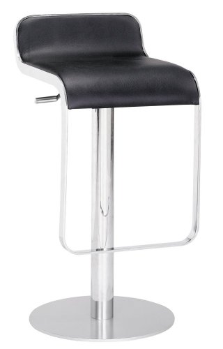 This furniture arrives unassembled. A modern designed adjustable bar stool, the Equino has a washable leatherette seat and chrome plated steel frame. 301111 Features: Chrome plated steel frame Black washable leatherette seat Chrome plated footrest Adjusts from counter to bar height Finish: Black leatherette / Chrome Dimensions: 15"(W) x 14.5"(D) x 31"-35"(H) Seat height: 26.5"-30.5" Seat depth: 13.5"