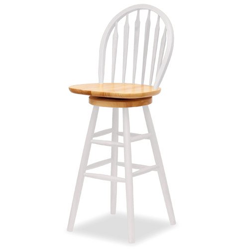 Display your classic sense of style with the traditional 30 Windsor Bar Stool by Winsome Wood. This chair features a swivel seat and contoured back for maximum comfort. Made of solid Beechwood with a white finish (natural Beech seat), this wood bar stool blends beautifully with light or dark decor. Place in the bar or at a kitchen counter for an instant upgrade and renovation.Equipped with wood foot rails, this bar stool offers comfort and convenience. The large seat surface and tall arrow back provide the comfort your guests will appreciate and will allow for relaxed enjoyment and socialization.
