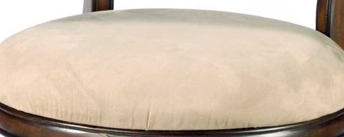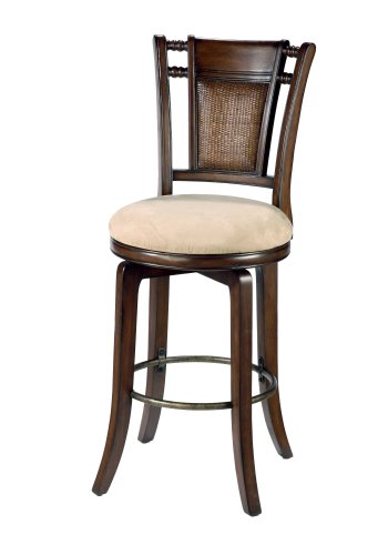 - Swivel barstool offers elegant tropical look- Deep brown wood frame; plush cream faux-suede upholstery