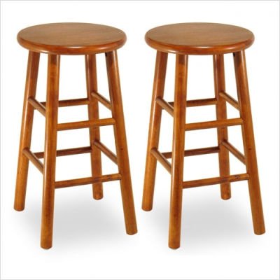 75284 A medley of simplicity and stability, this backless counter stool is the perfect stool for your kitchen or bar. It boasts a solid wood frame, a cherry finish and a beveled seat for added style. Features: -Solid wood frame -Price includes 2 Stools -Dimensions: 24'' H x 13'' W x 13'' D -Suited for Residential use only -Some Assembly required