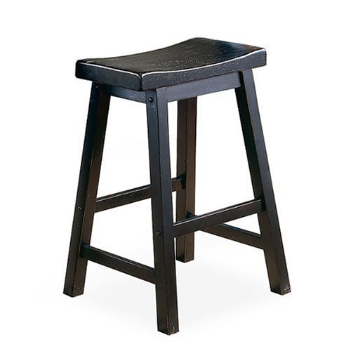- Set of 2 distressed black stools for casual or kitchen seating- Solid rubberwood, finished in contemporary black