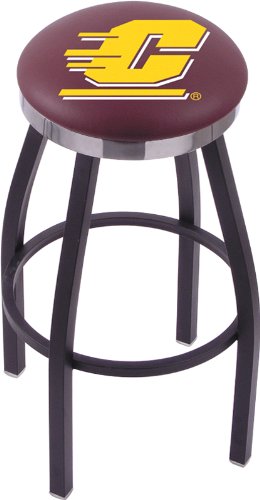 Commercial quality frame is plating grade steel with solid weld construction Black epoxy-polyester powder coat finish with chrome trim Available in 25'' Counter or 30'' Bar height Seat boasts a commercial grade vinyl cushion that coordinates with the logo colors Silk screened logo of your favorite team Silk screening process uses specially formulated vinyl paints which enhance the clarity, detail, and durability of the logo You will not find a higher quality logo seat on the market Commercial quality and will fit well in both residential and commercial applications 1-Year residential warranty that covers any defects in workmanship or materials Lifetime Warranty on the swivel Stool rated for up to 400 lbs Made in The USA Entire "Central Michigan University " collection available, including coordinating Pub Tables