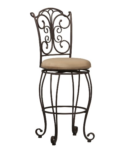 The elegance and unique style of this 30" Swag Bar Stool will carry throughout your kitchen, dining, or home pub area. Crafted of metal and highlighted with subtle curves and a distinctive back, this stool is a positively striking addition to your home. The cushion is piled high for extra comfort and covered in a light brown/caramel microfiber. This stool is elegant and versatile making it the perfect choice for any gathering area.