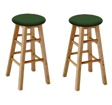 Buy 2 24" Tall Custom Specialty Natural Barstools with a Green Vinyl Seat Now