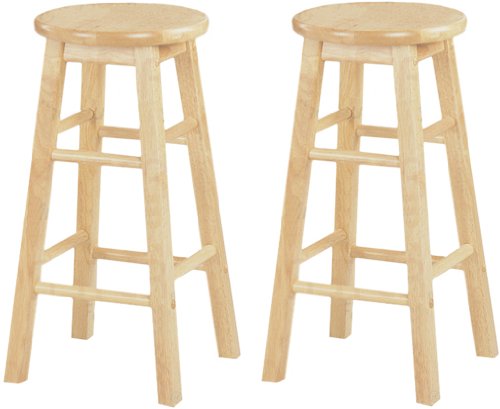 Buy 2 24" Tall Natural Finish Solid Wood Barstools Now