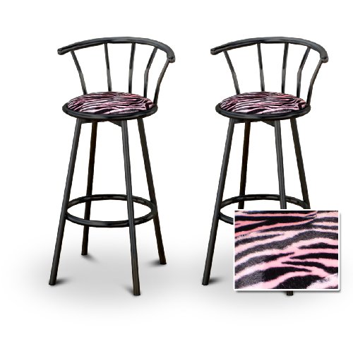 Buy 2 Animal Pink Zebra Print Black Swivel Barstools Now