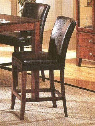 Set of 2 Black Faux Leather Parson Style Counter Height Bar Chairs This is a beautiful and elegant parson style counter height bar stool made of brown finish wood and black faux leather cushion covering. The back is also cushioned for optimal comfort. Item may require simple assembly. Matching Dining Table, Dining Chair, Counter Height Dining table are sold separately. Dimensions Measure: 39"Height.