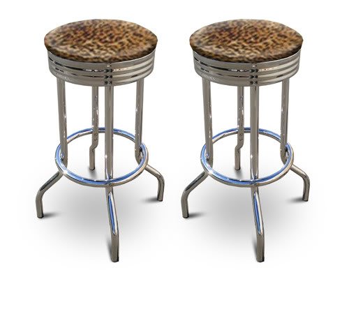Buy 2 Cheetah Print Animal Faux Fur 29'' Specialty Chrome Barstools Bar Stools Now