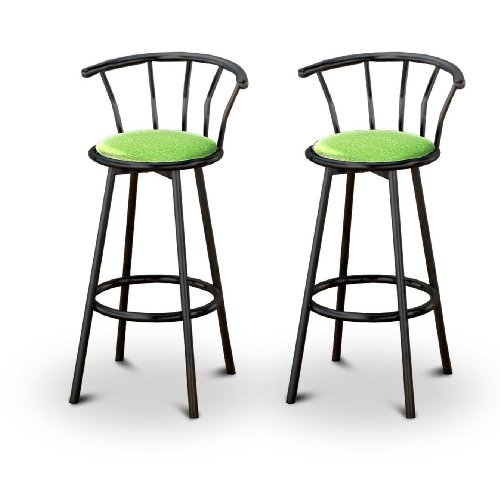 Buy 2 Glitter Green Vinyl Black 29" Swivel Barstools Now