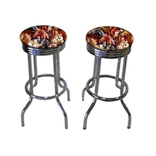 Buy 2 Horse Country Themed 29'' Specialty Chrome Barstools Bar Stools Now