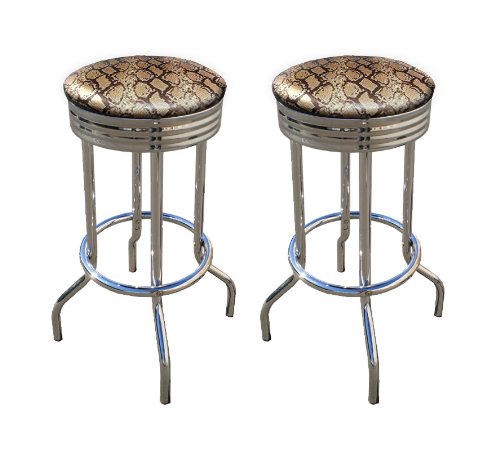 Buy 2 MAN CAVE Rattlesnake Faux Skin Print 29'' Specialty Chrome Barstools Bar Stools Now