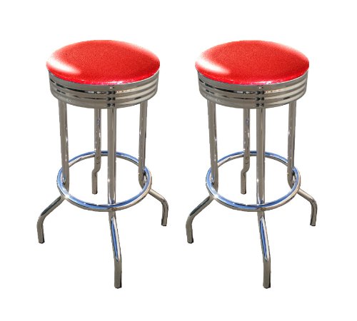 Buy 2 MAN CAVE Red Glitter Vinyl 29'' Specialty Chrome Barstools Bar Stools Now